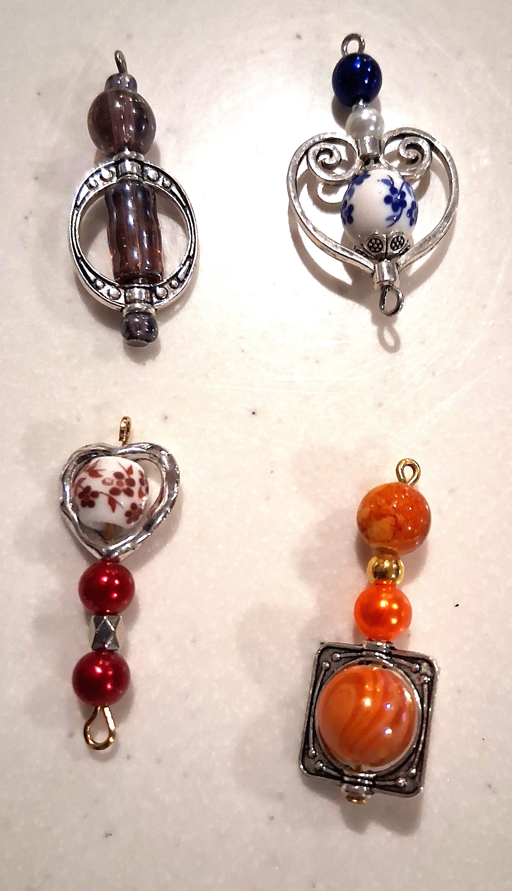 Each charm in this set is a celebration of color and texture — featuring elegant ceramic, glass, and porcelain beads encased in intricate metalwork. These stand-alone pendants are perfect focal pieces for necklaces.
