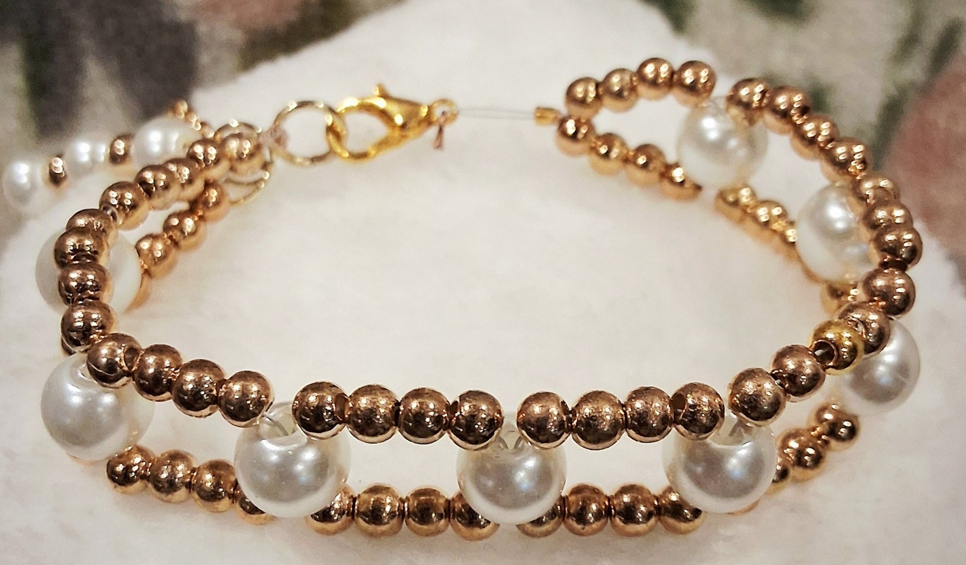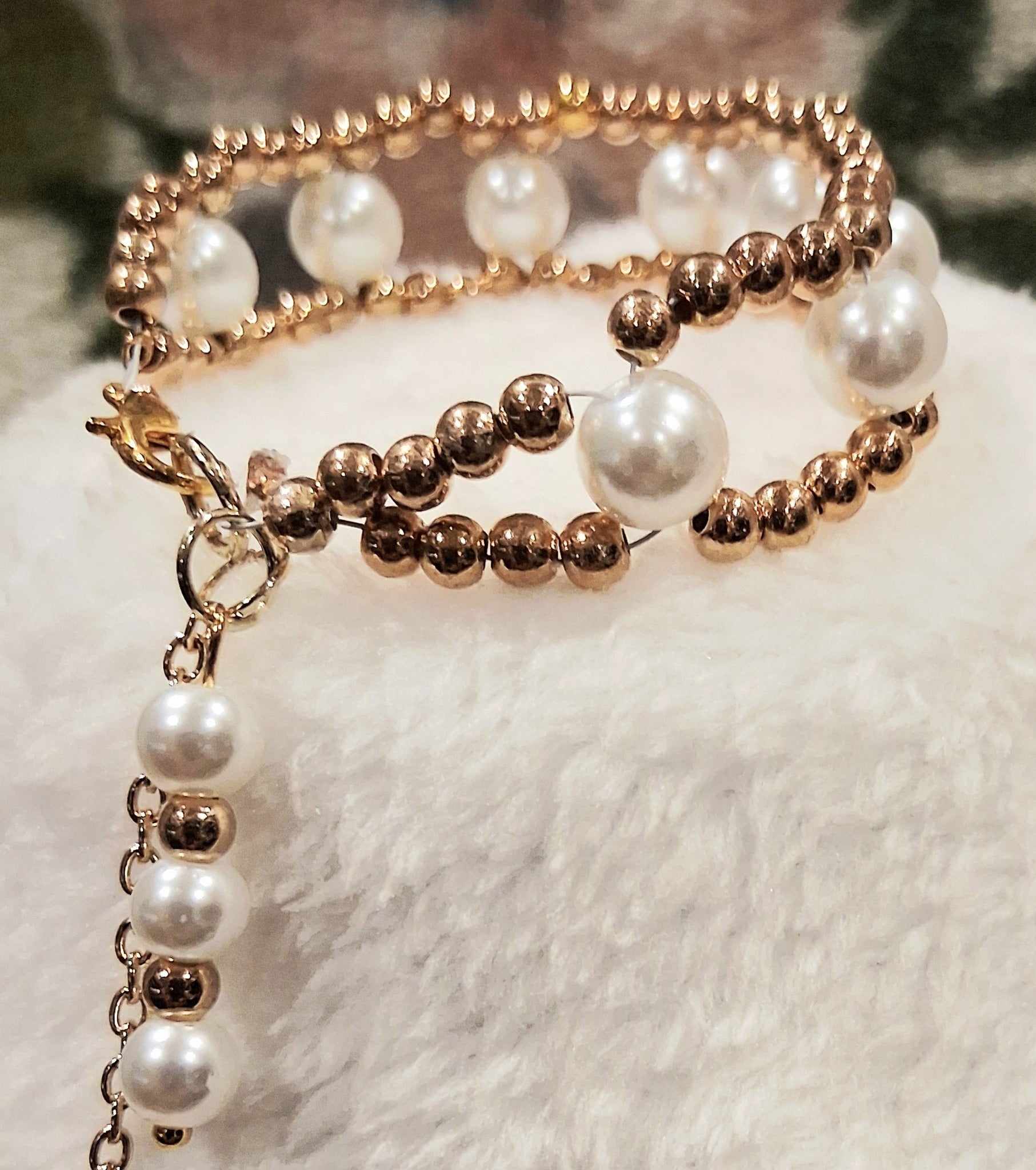 Elegant Gold & Pearl Beaded Bracelet – Double Strand