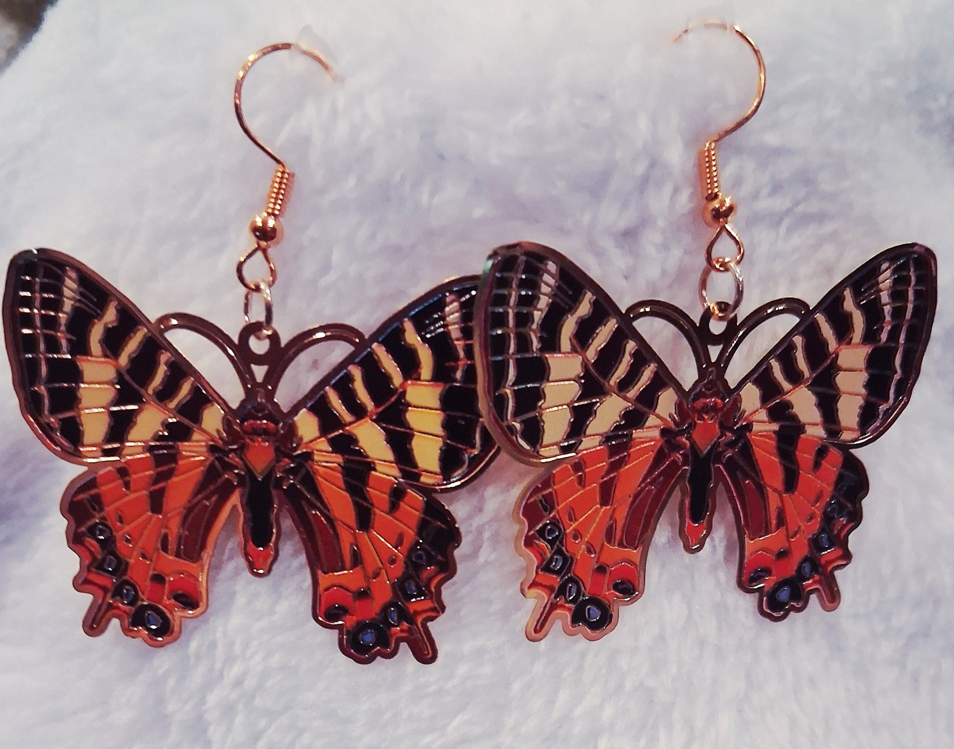 Radiant Butterfly Dangle Earrings – Orange, Black & Gold