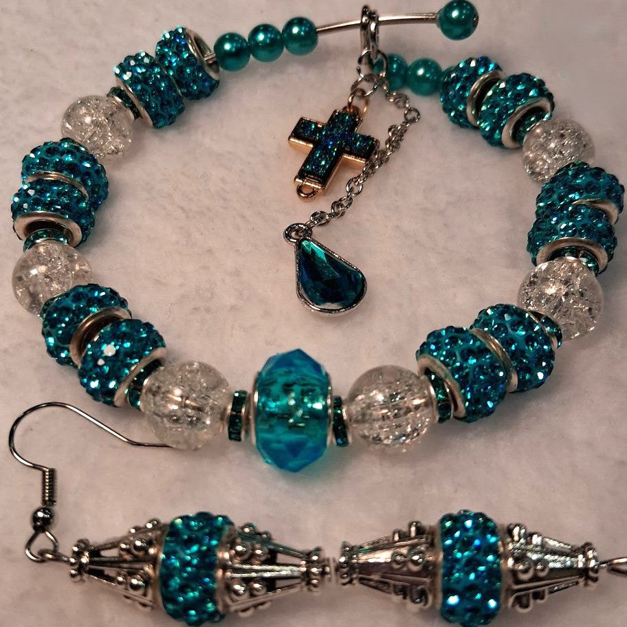 - Large whole sparkle turquoise beads and well as clear glass beads, also features turquoise rondel beads.
